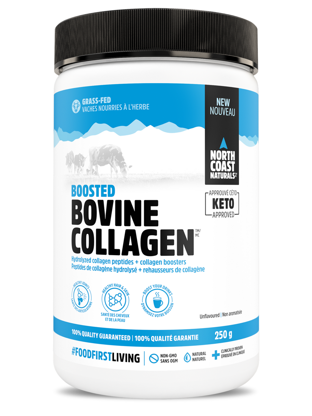 Boosted Bovine Collagen™ is sustainably sourced from pasture-raised, grass fed cattle. Added L- Lysine, Glycine, Vitamin C and Biotin help further boost overall joint, hair, nail and skin collagen formation.