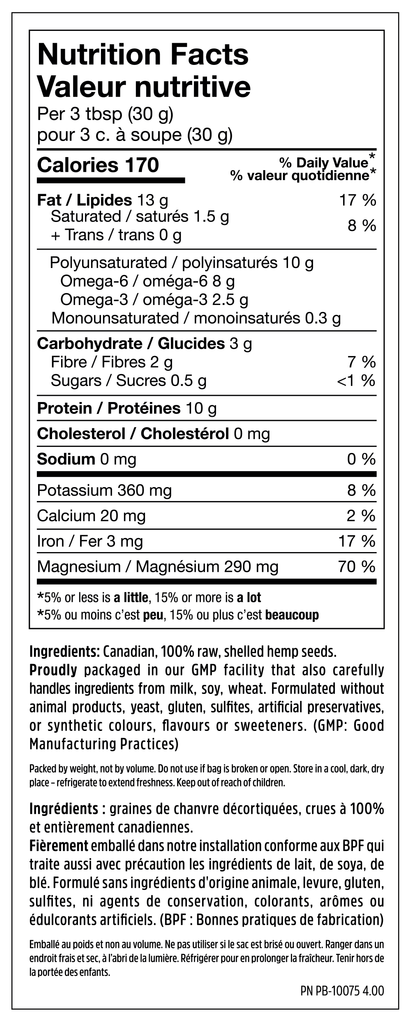 Canadian, 100% raw, shelled hemp seeds.